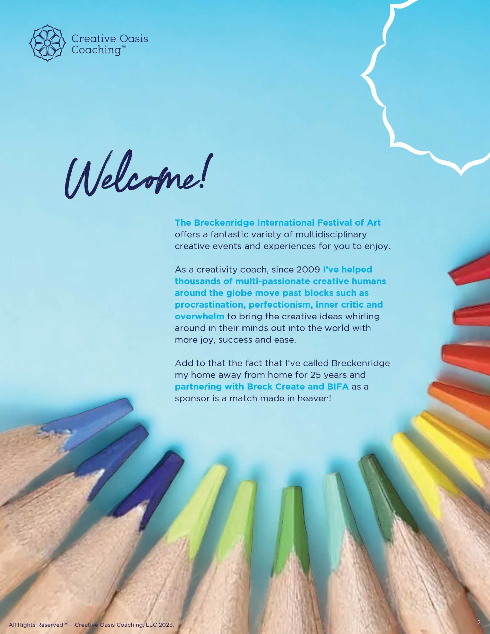 Click the button below for more details and times for all of the creative events and experiences happening during the Breckenridge International Festival of Art (BIFA) via Breck Create!