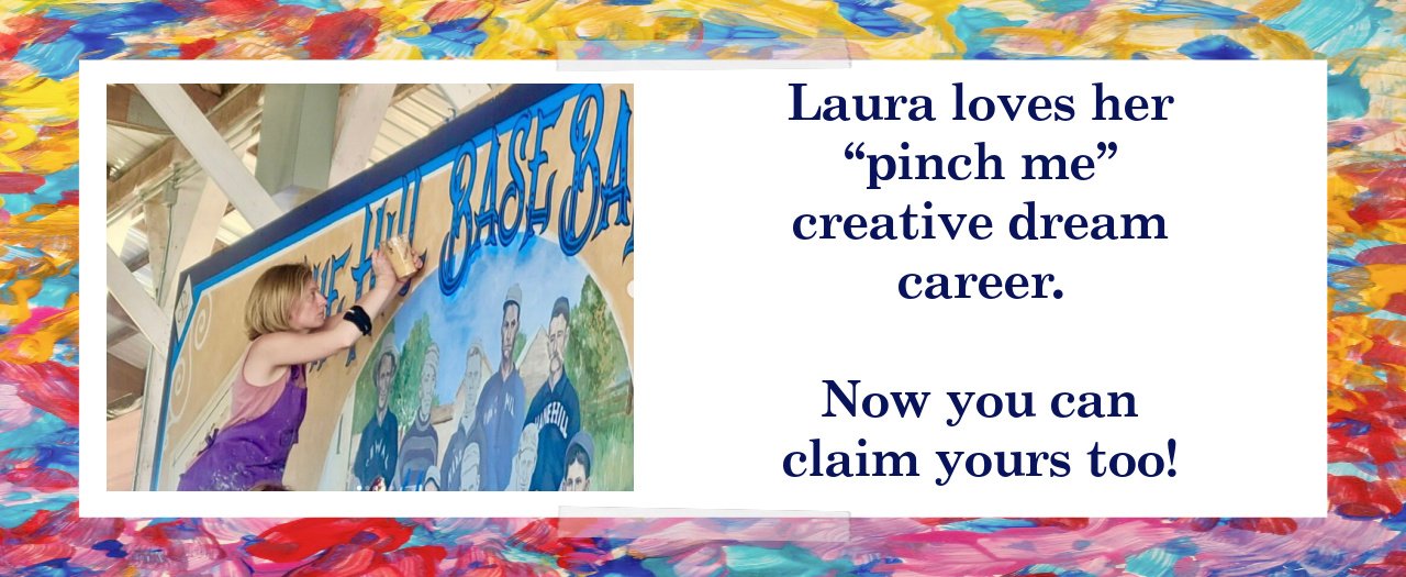 “I never imagined it would be possible, but I’m doing it. I’m living my creative dream life as a full-time mural artist — and I’ve never been happier!”